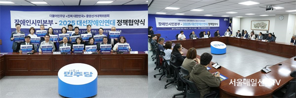 ±è¼­Áß ±âÀÚ / 2025 ´ë¼±Àå¾ÖÀο¬´ë´Â 5¿ù 14ÀÏ(¼ö) ±¹È¸ÀÇ¿øÈ¸°ü ´õºÒ¾î¹ÎÁÖ´ç Á¤Ã¥½Ç¿¡¼­ ´õºÒ¾î¹ÎÁÖ´ç <ÁøÂ¥ ´ëÇѹα¹> Áß¾Ó¼±°Å´ëÃ¥À§¿øÈ¸ Àå¾ÖÀνùκ»ºÎ¿Í °ø½Ä Á¤Ã¥Çù¾à½ÄÀ» °®°í, Àå¾ÖÀÎÀÇ ±Ç¸®¸¦ ½ÇÁúÀûÀ¸·Î º¸ÀåÇÏ´Â Á¤Ã¥ ÀÌÇàÀ» À§ÇÑ »óÈ£ Çù·ÂÀ» ¾à¼ÓÇß´Ù.