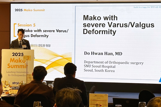 SNU¼¿ïº´¿ø ¹«¸Àü´ãÆÀ ÇѵµÈ¯ ¿øÀåÀº ¡®Mako TKA »ç·Ê ±â¹Ý ÆÐ³Î Åä·Ð¡¯ ¼¼¼Ç¿¡¼ ÁßÁõ ³»¹Ý¡¤¿Ü¹Ý º¯Çü ¹«¸ ȯÀÚÀÇ MAKO ·Îº¿ Àΰø°üÀý ¼ö¼ú °æÇèÀ» ¹ßÇ¥Çϸç, 3D ±â¹Ý Á¤¹Ð ¼ö¼ú °èȹ°ú ÀÎ´ë ±ÕÇü Á¶ÀýÀÇ ÀåÁ¡À» °Á¶Çß´Ù(Á¦°ø=SNU¼¿ïº´¿ø)