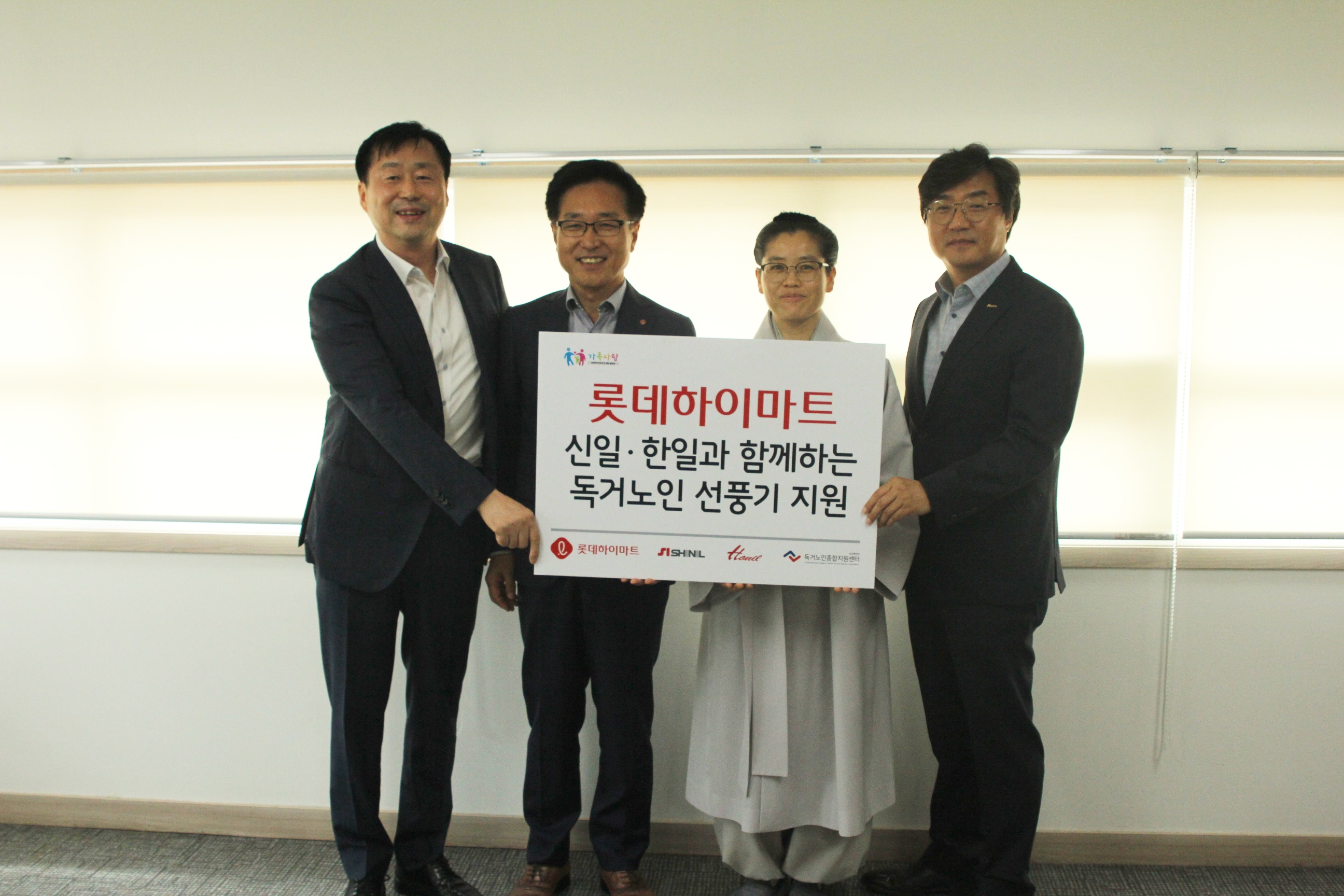 ¼±Ç³±â°¡ ¾ø°Å³ª ³ëÈÄÇÏ¿© ±³Ã¼°¡ ÇÊ¿äÇÑ ¾î¸£½ÅµéÀ» À§ÇØ Æø¿°´ëºñ¿ëǰÀÎ ¼±Ç³±â 80´ë¸¦ Áö¿øÇÏ¿´°í, ·Ôµ¥ÇÏÀ̸¶Æ® ¹× ÆÄÆ®³Ê»çÀÎ ½ÅÀÏ»ê¾÷, ÇÑÀÏÀü±â¿Í ÇÔ²² Àü´Þ½ÄÀ» ÁøÇàÇÏ¿´À¸¸ç Àü´Þ½Ä¿¡´Â ·Ôµ¥ÇÏÀ̸¶Æ® ±èÇöö »óǰº»ºÎÀå, ½ÅÀÏ»ê¾÷ Á¤À±¼® ´ëÇ¥ÀÌ»ç, ÇÑÀÏÀü±â ¹ÚâÁø ¿µ¾÷º»ºÎÀå, ½Ã¸³°­ºÏ³ëÀÎÁ¾ÇÕº¹Áö°ü ±è¹Î¼÷ °üÀåÀÌ Âü¼®Çß´Ù.