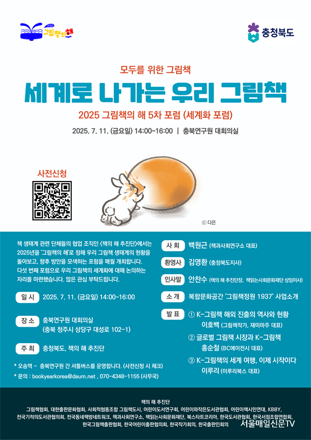 ±è¼Áß ±âÀÚ / ¡®Ã¥ÀÇ ÇØ ÃßÁø´Ü*¡¯[°øµ¿ ÃßÁø´ÜÀå : ±èÁß¼® ±×¸²Ã¥Çùȸ ȸÀå, ¾ÈÂù¼ö Ã¥Àд»çȸ¹®ÈÀç´Ü »óÀÓÀÌ»ç, ÀÌÇÏ ÃßÁø´Ü]Àº ÃæÃ»ºÏµµ [µµÁö»ç : ±è¿µÈ¯]¿Í °øµ¿ÁÖÃÖ·Î 7¿ù 11ÀÏ(±Ý) ¿ÀÈÄ 2½ÃºÎÅÍ 4½Ã±îÁö ÃæºÏ¿¬±¸¿ø ´ëȸÀǽǿ¡¼ <2025 ±×¸²Ã¥ÀÇ ÇØ 5Â÷ Æ÷·³ : ¼¼°è·Î ³ª°¡´Â ¿ì¸® ±×¸²Ã¥>À» ¿¬´Ù.
